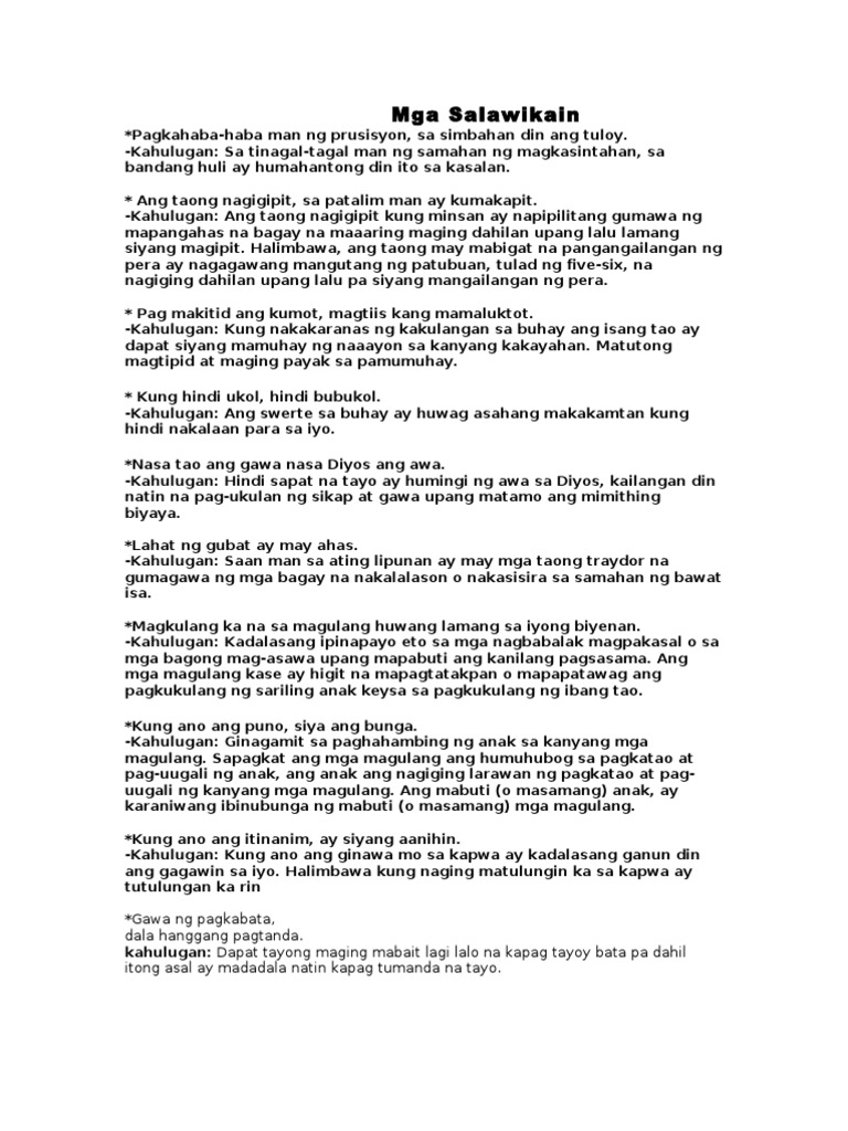 Answers Ito ay nagsasaad na walag sikretond di nabubunyag Dahil alam nating lahat na ang lahat ng mga kasinungalinga ay may hangganan Anong kahulugan ng kung hindi ukol hindi bubukol. Hindi porket sinwerte ang ibang tao sa larangang ito ay ibig sabihin ay suswertehin na din tayo. Ibig sabihin kung hindi para sa iyo ang isang bagay hindi na ito uusbong o lalawak pa.